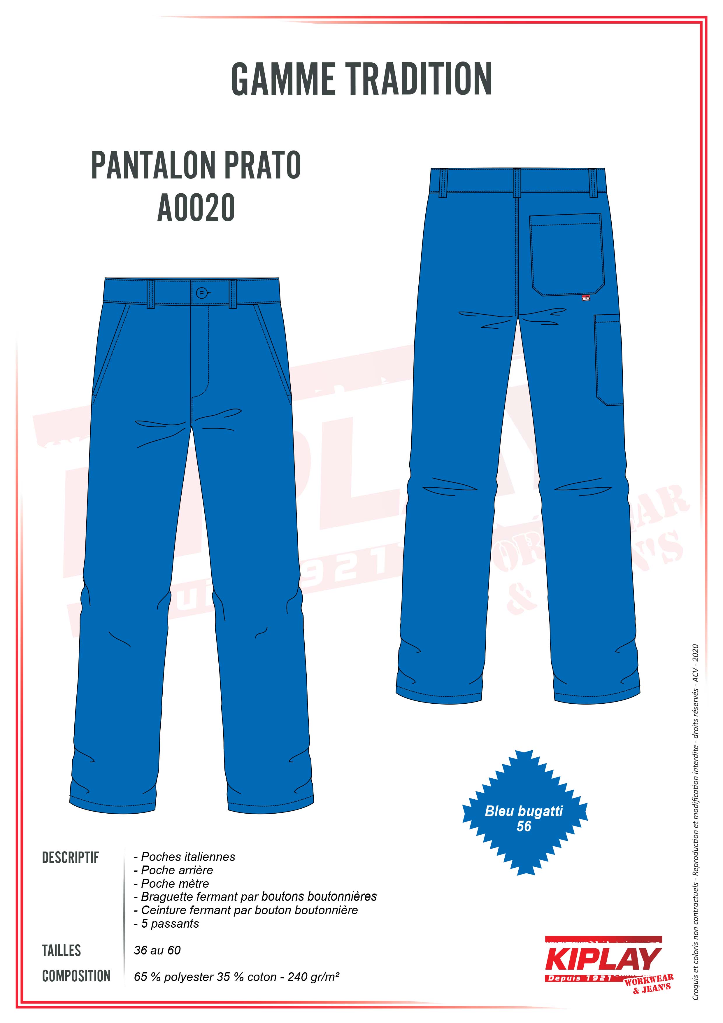 1 poche révolver, 1 poche mètre, 2 poches italiennes.