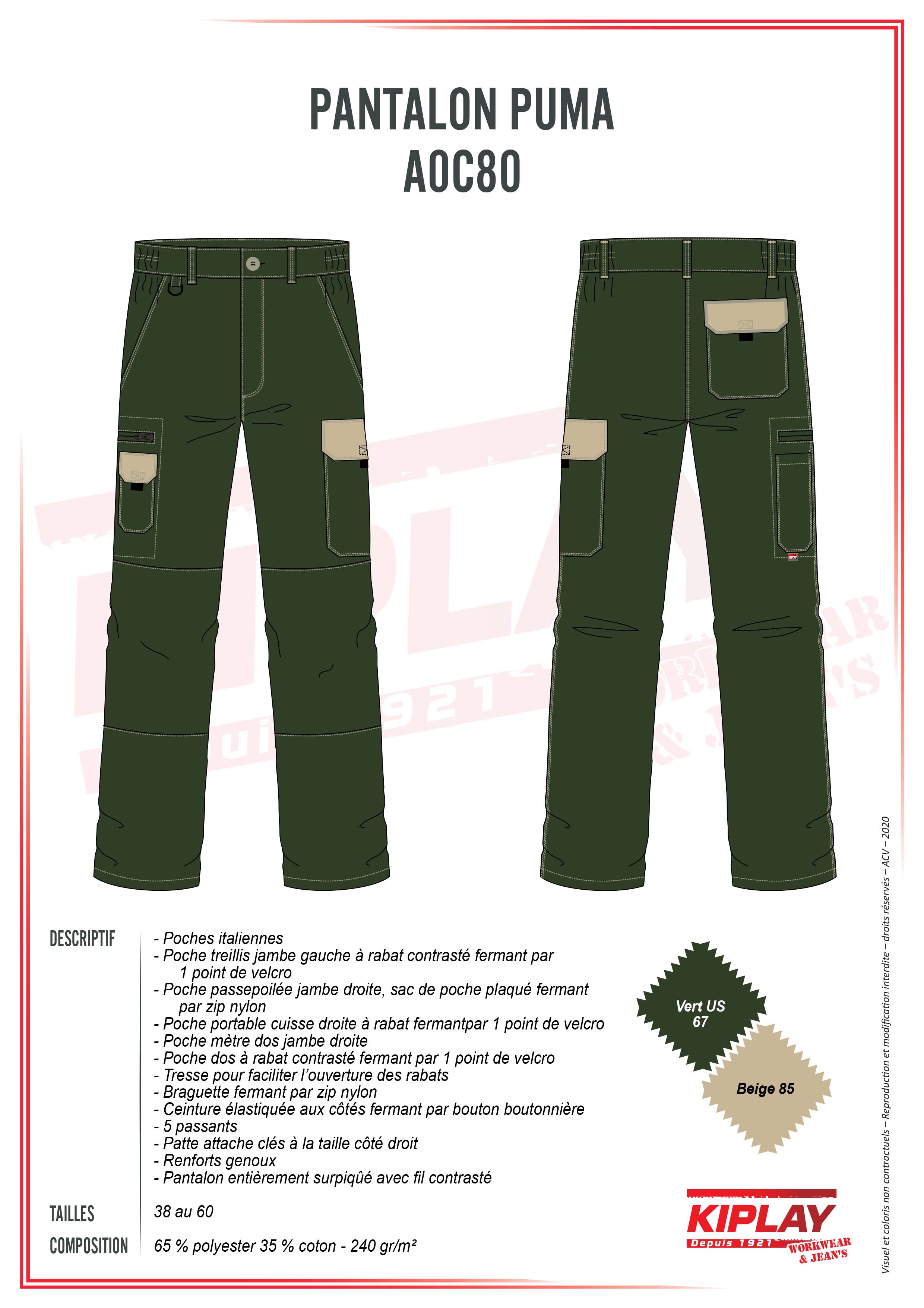Composition : 65 % polyester 35 % coton - 240 gr/m²