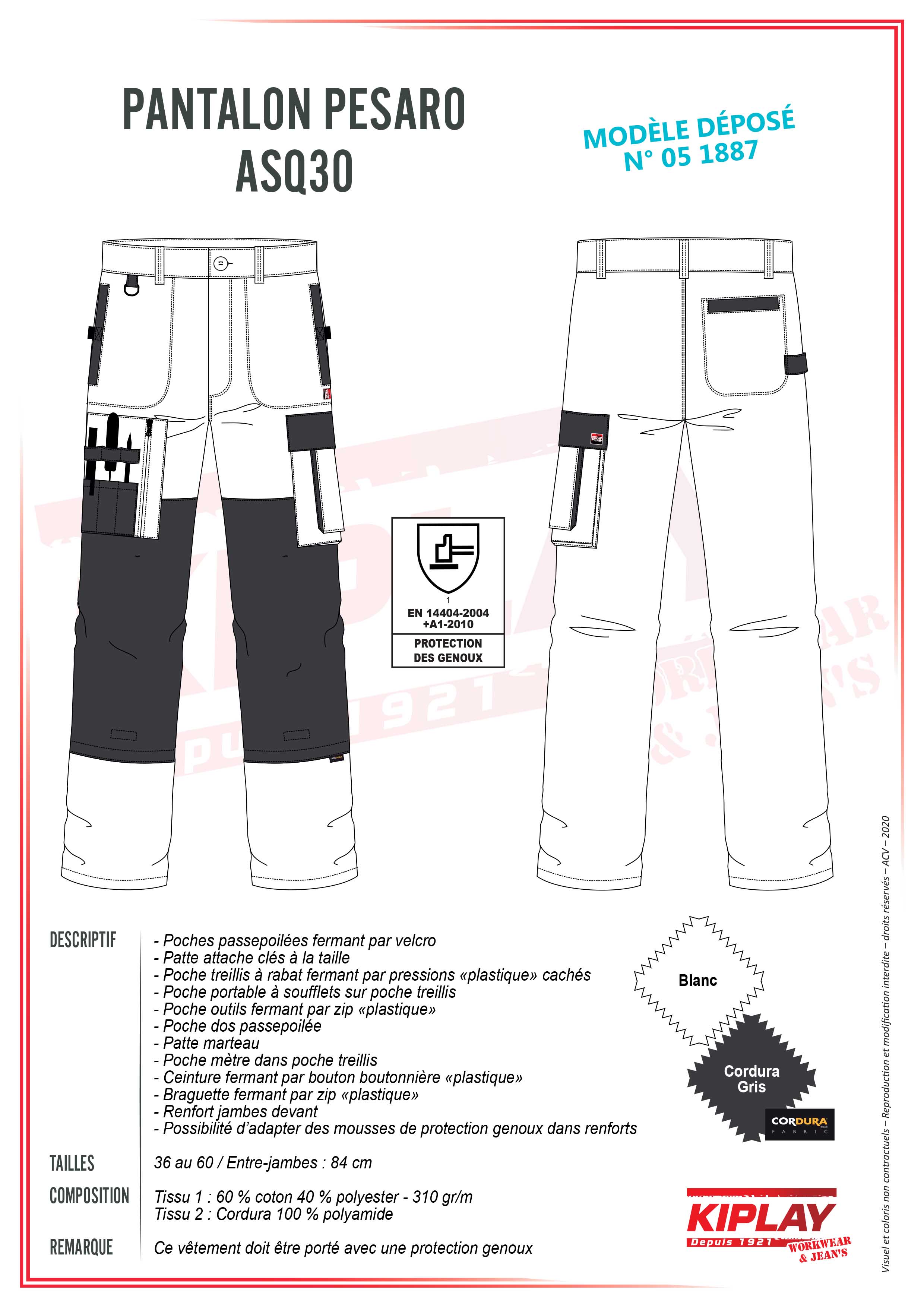 Ce vêtement doit être porté avec une protection genoux.