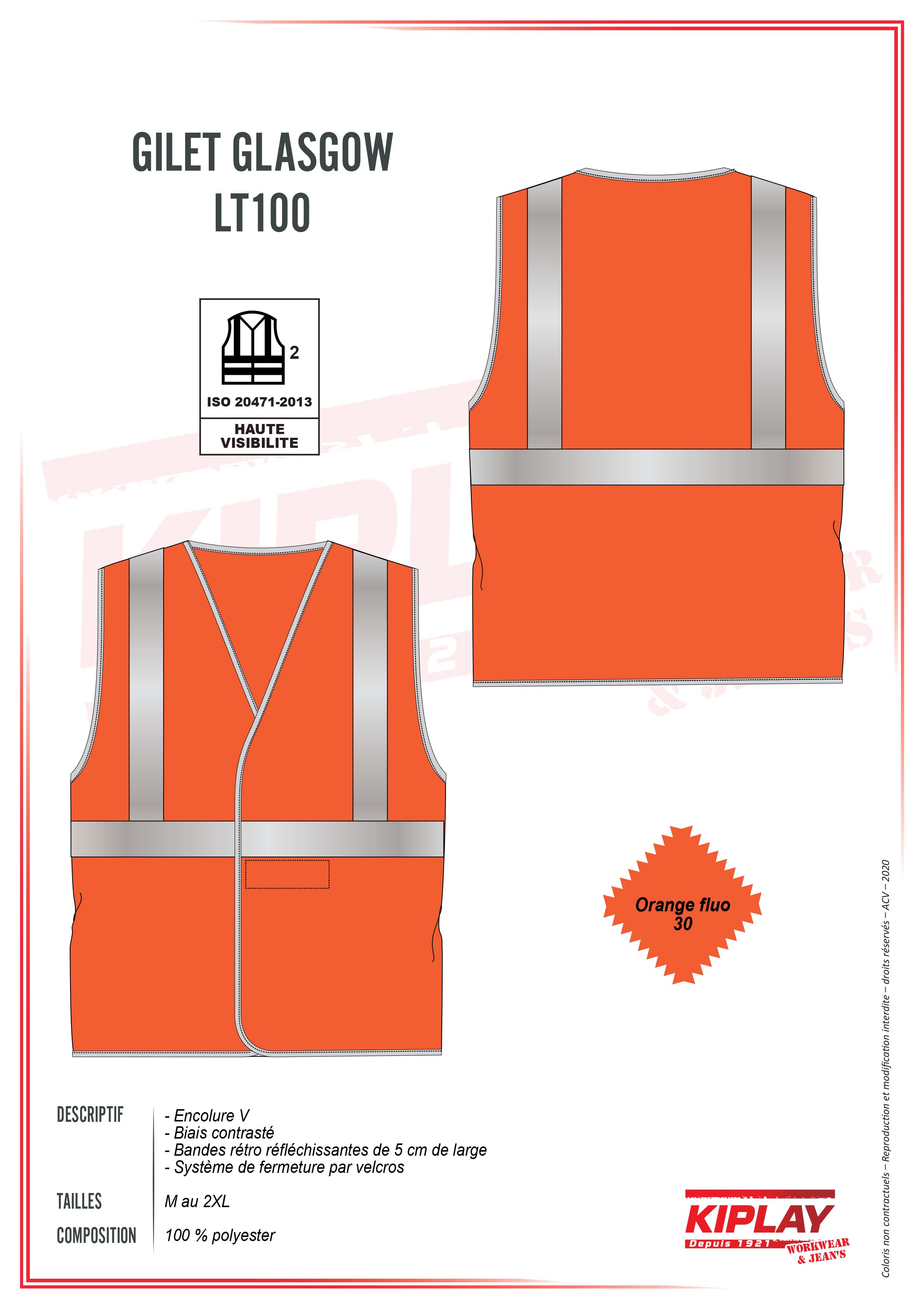 Gilet sans manches. Bandes rétro-réfléchissantes. Fermeture par velcro.