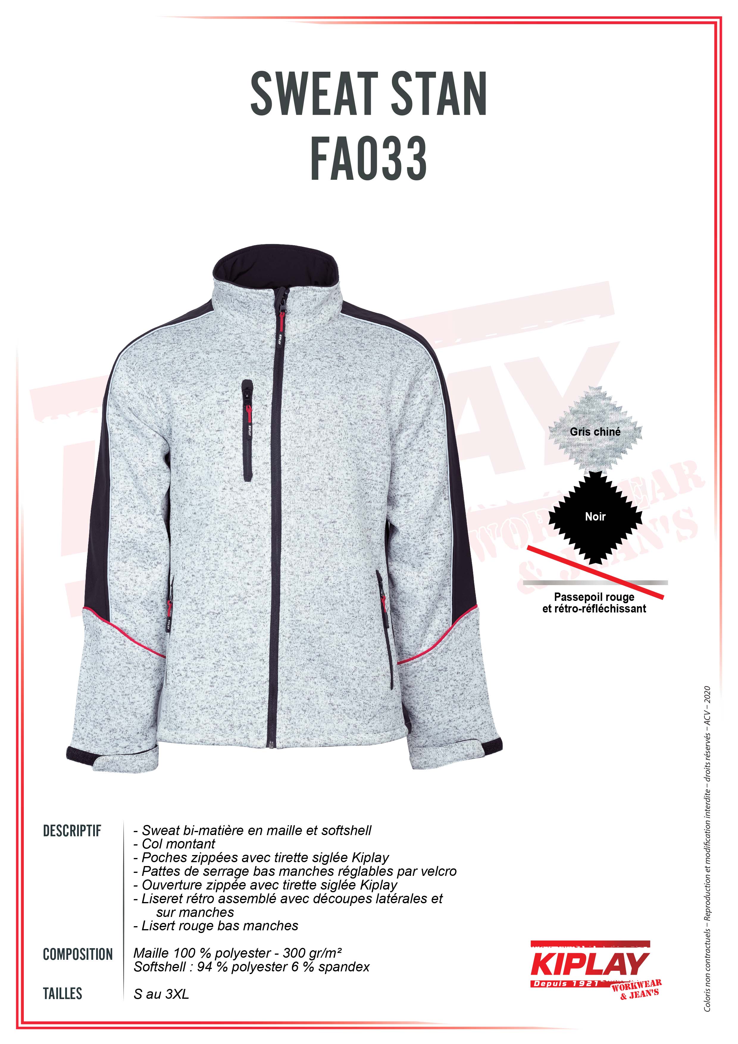 Sweat bi-matière en maille et softshell. Col montant, poches zippées avec tirette, pattes de serrage bas manches réglables par velcro, ouverture zippée avec tirette, liseret rétro assemblé avec découpes latérales et sur manches, passepoile rouge bas manche.