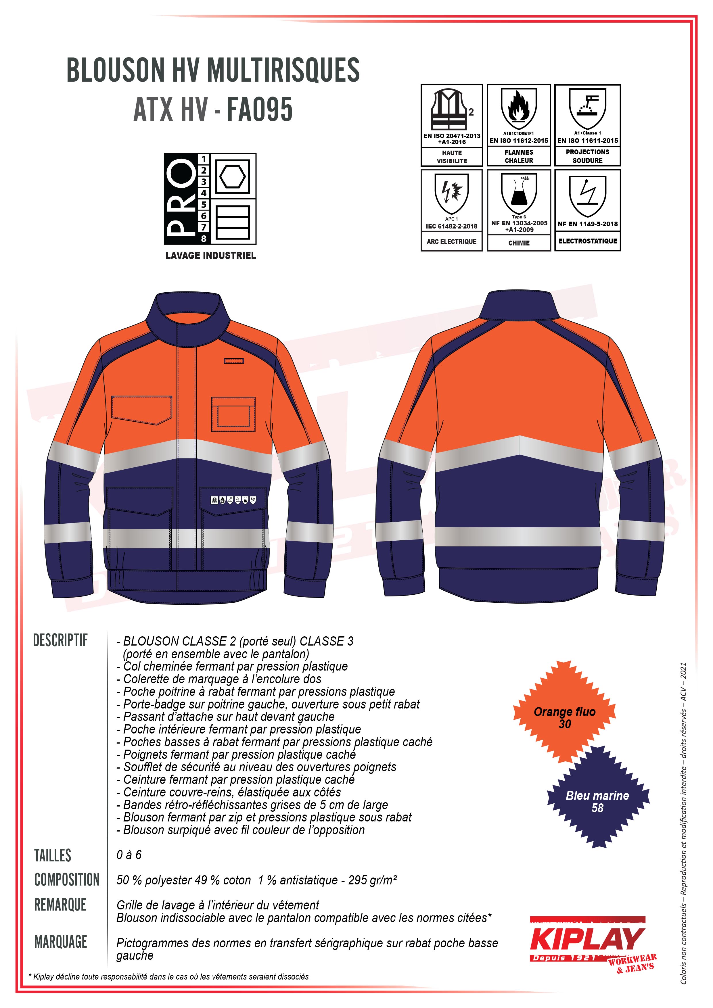 Blouson Haute Visibilité multirisques certifiée ISO20471, ISO11611, ISO11612, EN13034, EN1149-5, IEC61482-2