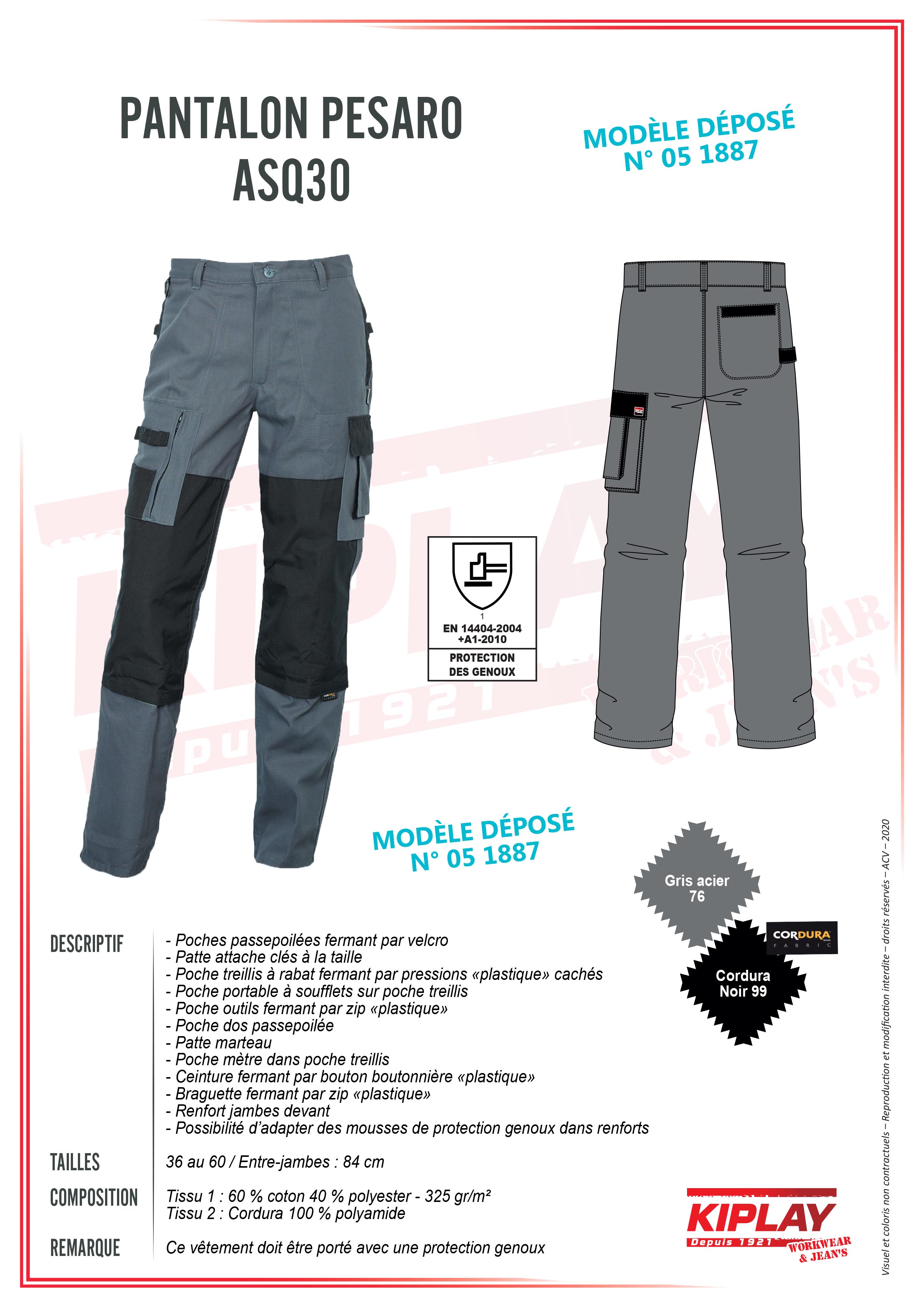 Ce vêtement doit être porté avec une protection genoux.